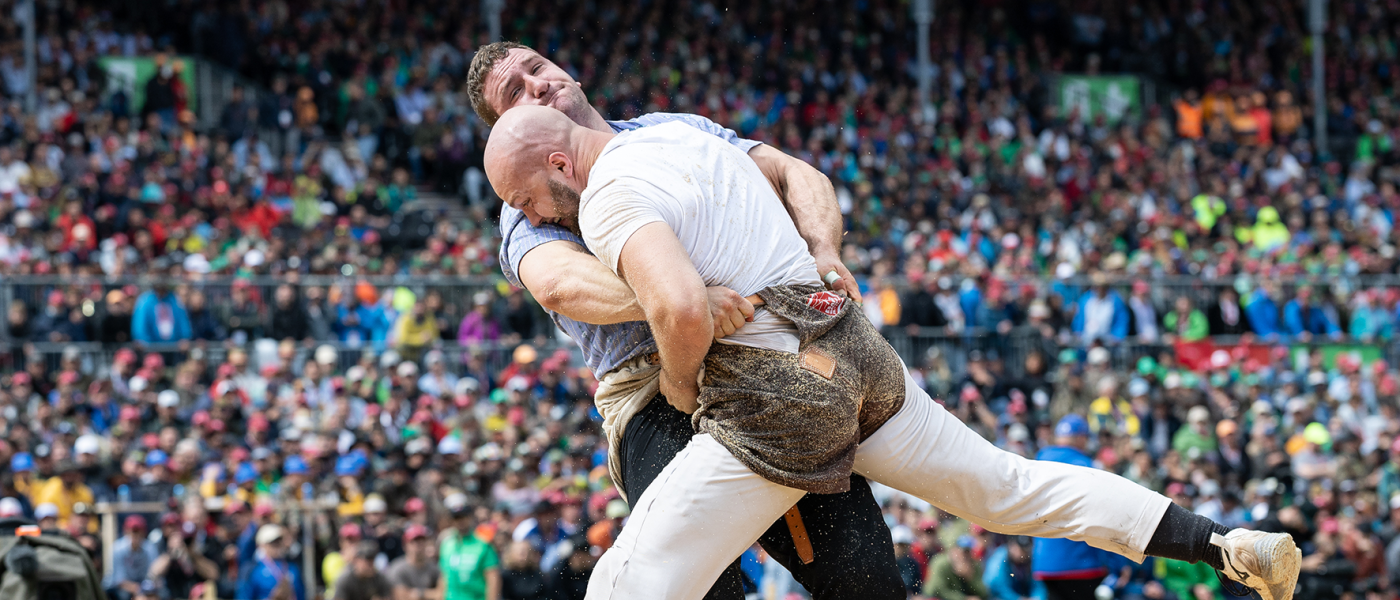 Aeschiried zeigt sich an diesem sonnigen Herbsttag von seiner schönsten Seite. Die beiden Kandertaler-Aushängeschilder, Josias Wittwer und Hanspeter Luginbühl, beenden ihre erfolgreichen Karrieren mit einer starken Leistung und werden dabei von 2850 begeisterten Zuschauern bejubelt.