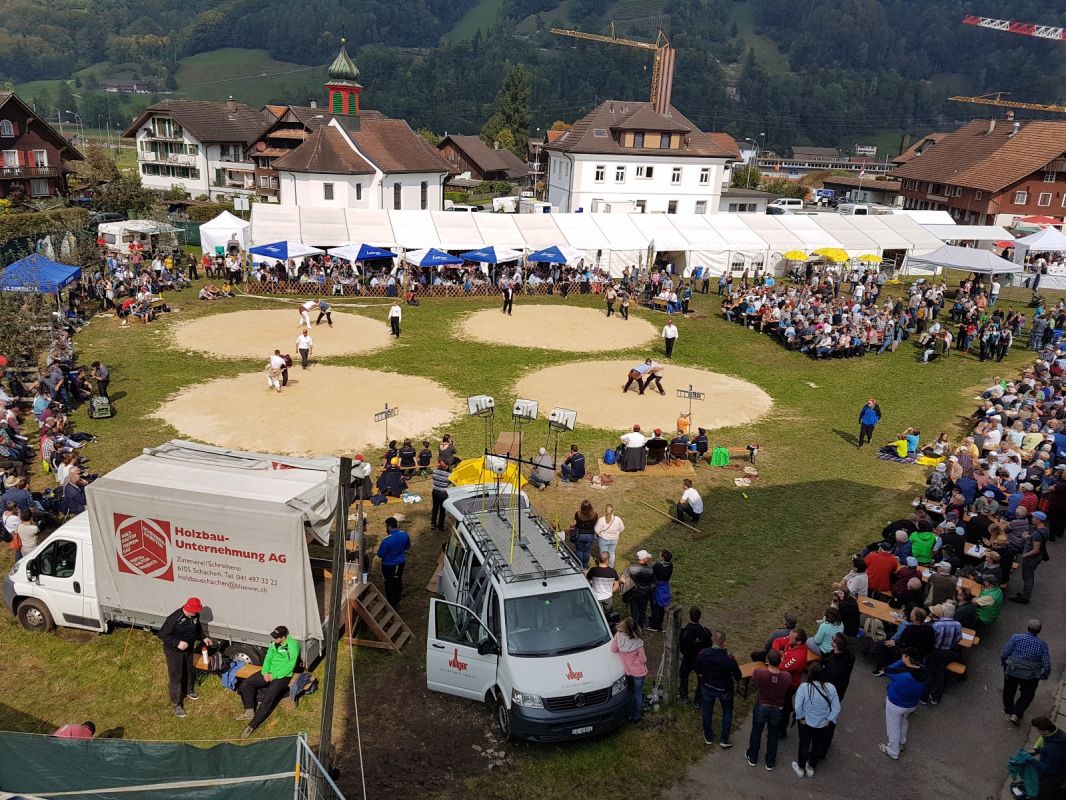 Bei angenehmen Herbsttemperaturen und strahlendem Sonnenschein fand am Sonntag der 43. Herbstschwinget Schachen statt. Vor zahlreichen Zuschauern zeigte sich die Schwingerszene noch einmal von ihrer besten Seite, ehe die Saison 2025 endgültig abgeschlossen wurde. Am Ende konnte sich Schwyzer Samuel als Festsieger feiern lassen.