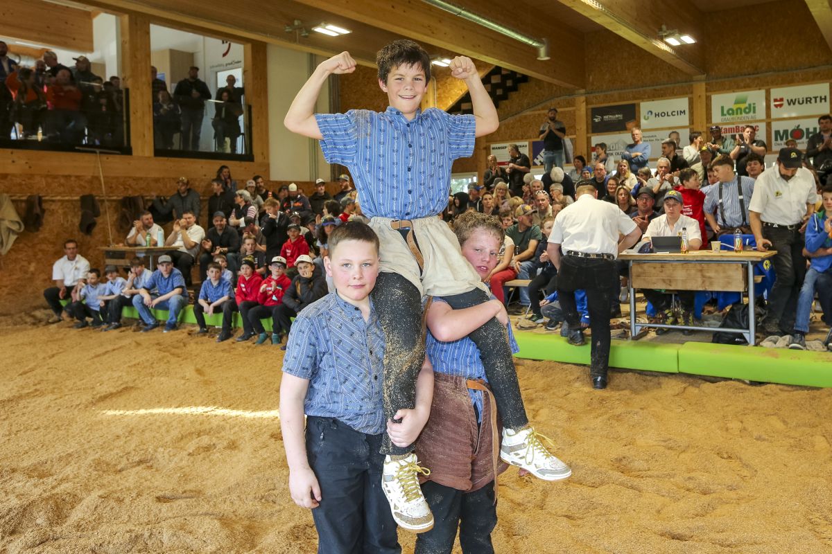 Einen Heimsieg für den gastgebenden Schwingclub Unterlandquart gab es bei den Jahrgängen 2013/14. Dönz Niclas lag schon nach fünf Gängen uneinholbar im Vorsprung, im Schlussgang stellte er gegen Cyril Ris (Schwingclub Mels).