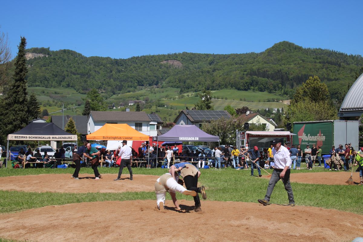 Schon zum zweiten Mal wechselte der Bezirksschwingklub Sissach nicht nur die Jahreszeit – vom Herbst in den Frühling –, sondern auch den Austragungsort: Statt in Gelterkinden fand der Anlass erneut in Sissach statt. Grund dafür war eine Terminkollision mit dem Kilchbergschwinget. Das Frühlingsschwinget wurde in diesem Jahr zudem nicht in der Kunsti, sondern auf der Wiese davor durchgeführt, wo Schwinger und Besucher einen stimmungsvollen und einladenden Festplatz vorfanden.