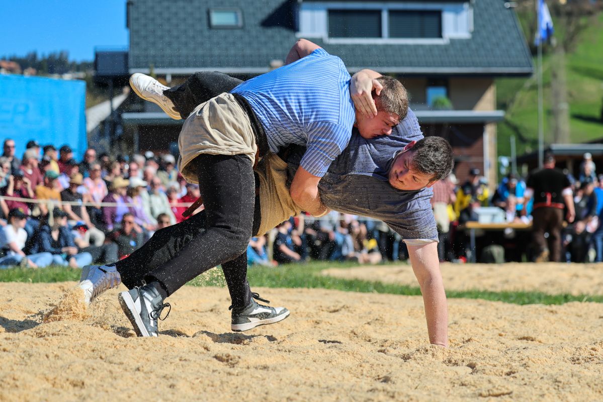 06.04.2026, Frühjahrsschwinget Zäziwil, Wyss Sven (l.) - Aeschbacher Matthias (r.)