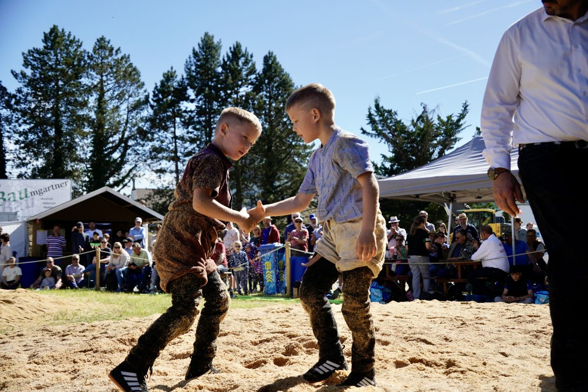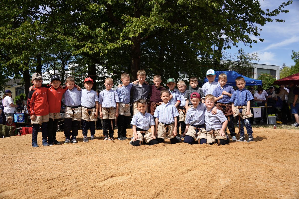 Am Schwinget im Zurzibiet 2026 bot Schwingklub Zurzibiet auch den Allerjüngsten, den "Piccolos" mit den Jahrgängen 2019/2020 die Möglichkeit, erste Wettkampferfahrungen zu sammeln. Neunzehn fünf- und sechsjährige Schwinger nutzten diese Gelegenheit. Der Schwingplatz 4, eigens für die Piccolos reserviert, war am Nachmittag ein Publikumsmagnet. Die Kleinsten übten sich in den wichtigsten Regeln im Schwingsport: sich die Hand geben, dem Gegner in die Augen schauen und als Sieger dem Verlierer das Sägemehl vom Rücken wischen. Nicht immer klappte dies auf Anhieb, aber die Piccolos zeigten, dass die nächste Schwingergeneration bereitsteht. Im Schlussgang standen sich nicht nur zwei Klubkollegen, sondern gar Zwillingsbrüder gegenüber: Liam und Alessio Marolf aus Hettenschwil wurden von Jungschwingerleiter Simon Märki mit den Worten: "Geniesst es!" in den Schlussgang geschickt. Und das taten sie, fast schon schien es nebensächlich, wer von beiden am Schluss von den Klubkollegen geschultert werden konnte. Diesmal konnte Liam den Festsieg erschwingen.
