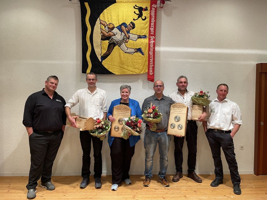 Neue Ehrenmitglieder im Toggenburger Schwingerverband Mit Dominik Schuler und Urban Götte wurden zwei zurückgetretene Vorstandsmitglieder sowie Andrea Abderhalden und Samuel Niederer neu in die Garde der Ehrenmitglieder des Toggenburger Schwingerverbandes aufgenommen – insgesamt also vier verdiente Persönlichkeiten. Andrea Abderhalden, Schwester von Schwingerkönig Jörg Abderhalden, ist seit der ersten Austragung des Schwägalp-Schwingets im Ressort Festwirtschaft tätig – und das bereits seit über 25 Jahren. Ihre langjährige und engagierte Mitarbeit macht sie zu einer festen Grösse im Schwingsport. Samuel Niederer vom Schwingclub Wil ist ebenfalls neu unter den Ehrenmitgliedern. Als langjähriger Speaker am Schwägalp-Schwinget sowie bei zahlreichen Schwingfesten im Toggenburger Verbandsgebiet prägte er die Veranstaltungen mit seiner Stimme. Nun hat er sich aus seinen Funktionen zurückgezogen und geniesst die Feste als Zuschauer. Alle vier wurden für ihr ausserordentliches Engagement im Toggenburger Schwingsport verdient geehrt. Pascal Schönenberger