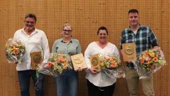 Die neuen Ehrenmitglieder (v.l.n.r.) Jules Schweizer, Sandra Reichmuth, Irene Iten und Alex Stöcklin